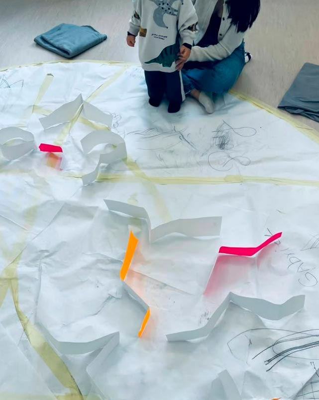 A través de prácticas que integran el gesto, la voz, el trazo y la presencia, Parpadeo(s) acompaña a las familias en procesos de exploración, escucha y conexión, favoreciendo espacios donde el arte se convierte en un lenguaje común para habitar, comprender y cuidar la vida desde sus primeros instantes.